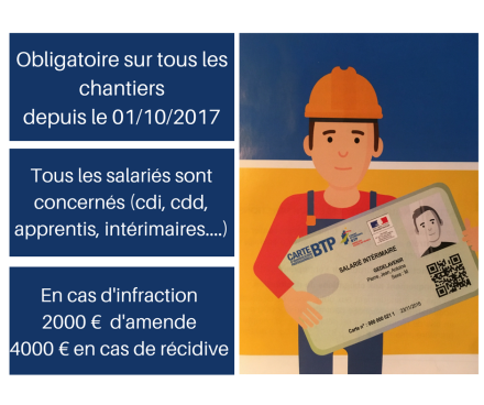 Les salariés des entreprises françaises de bâtiment et de travaux publics étaient porteurs, depuis 2006, d'une Carte BTP blanche délivrée par les caisses Congés Intempéries BTP. Cette carte n’est plus valable depuis l'entrée en vigueur de la nouvelle Carte BTP le 22 mars 2017